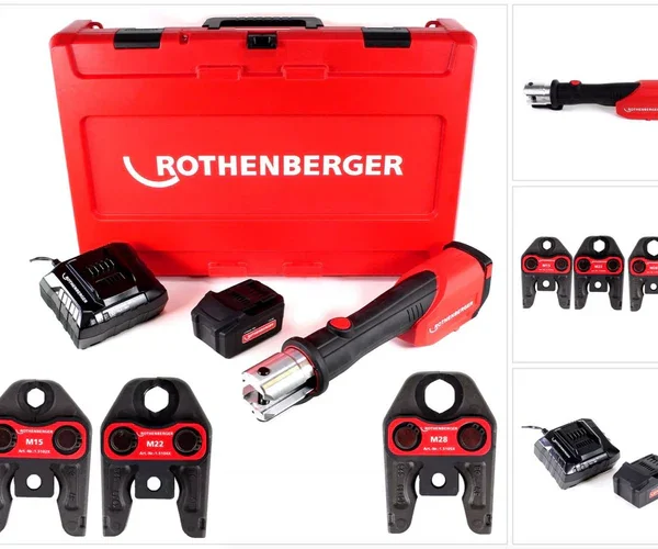 Lieferumfang:- 1xRothenberger ROMAX 4000 18 V Li-Ion Akku Pressmaschine elektrohydraulisch Basic Set- 1xCAS Cordless Alliance SystemLi-HD Akku – 18V4,0Ah- 1xCAS Cordless Alliance System 18V Ladegerät- 1x Rothenberger Pressbacke Standard M15 für Pressmaschinen ROMAX ( 015102X )- 1x Rothenberger Pressbacke Standard