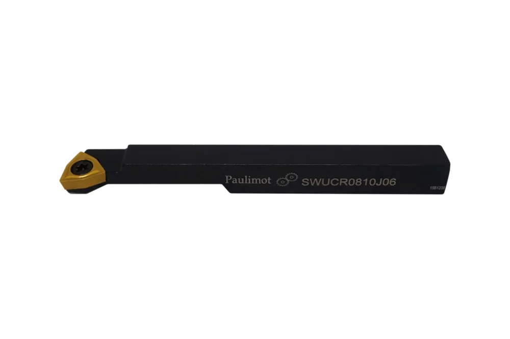 Dieser Drehmeißel mit der Normbezeichnung SWUCR0810J06 hat einen Schaft mit 11 x 10 mm und eine Gesamtlänge von 110 mm.